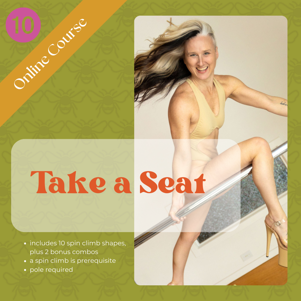 Once you get over the initial thigh pain, a Pole Seat is a great place to be. The Pole Seat is a fantastic all levels trick that has tons of variations. This course, called Take a Seat, explores ten perfect shapes you can do if you have a Pole Seat. Plus, there are two bonus combos at the end that I know you’re going to want to try.