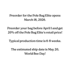 Preorder your bag before April 1 and get 20% off the Pole Bag Elite's retail price! Use code PREORDER20 at check out.